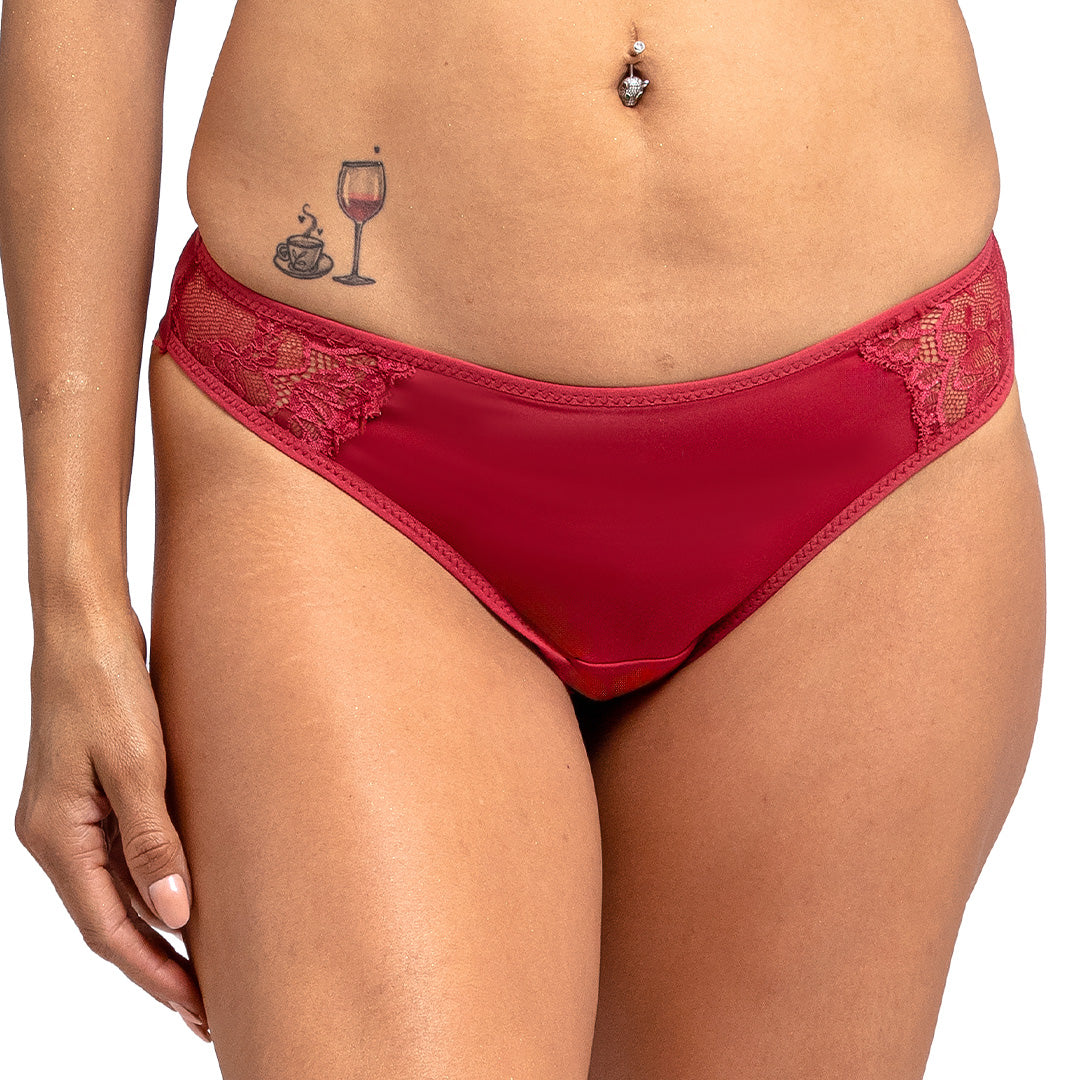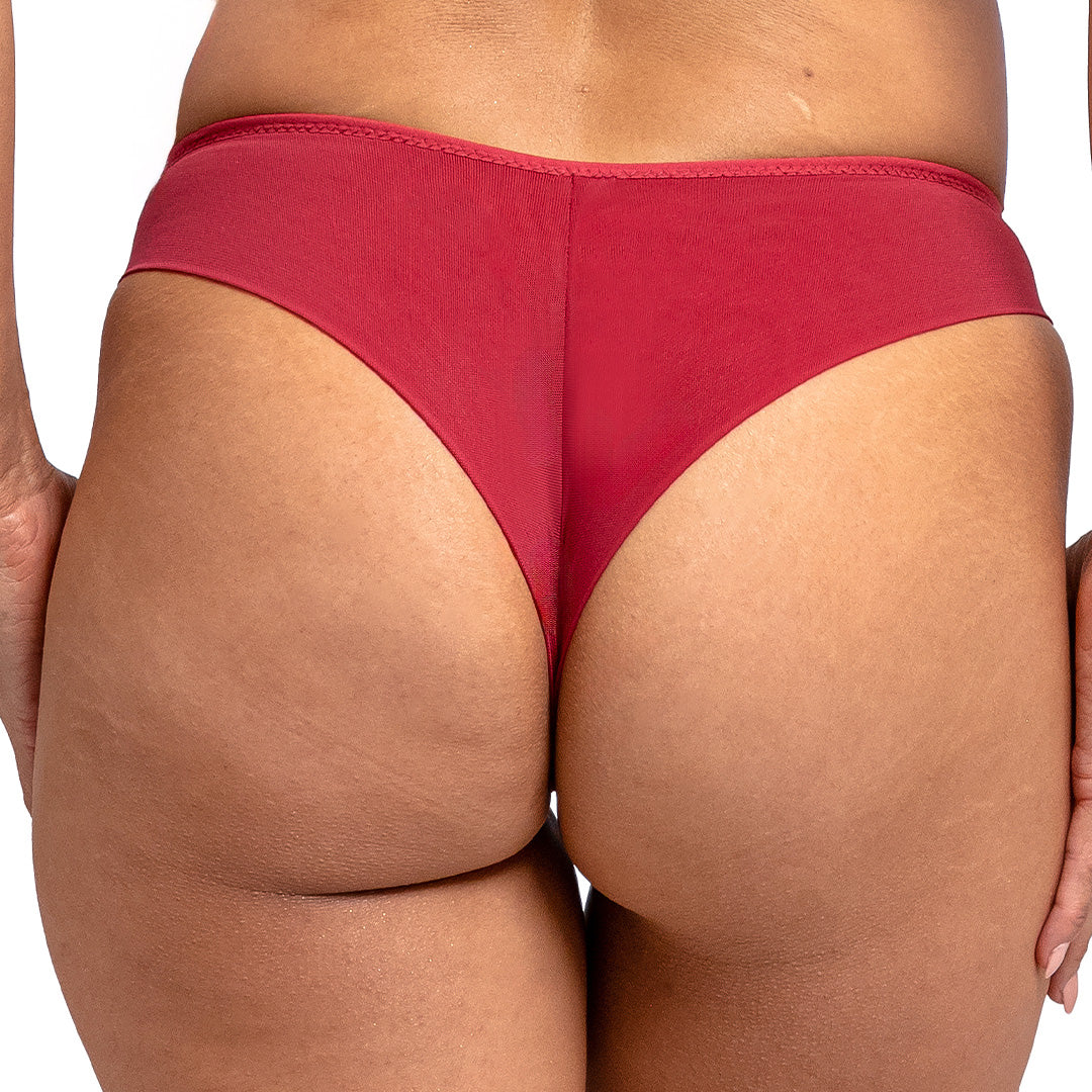 Cachetero con detalles de encaje que combina atrevimiento y delicadeza. Diseño que realza naturalmente mientras el encaje añade un toque de sofisticación provocadora. Tela suave y elástica que se adapta perfectamente, mostrando confianza en cada curva. Pieza versátil que funciona como base invisible o como protagonista bajo prendas transparentes, ideal para quien busca sentirse poderosa, cómoda y absolutamente irresistible.